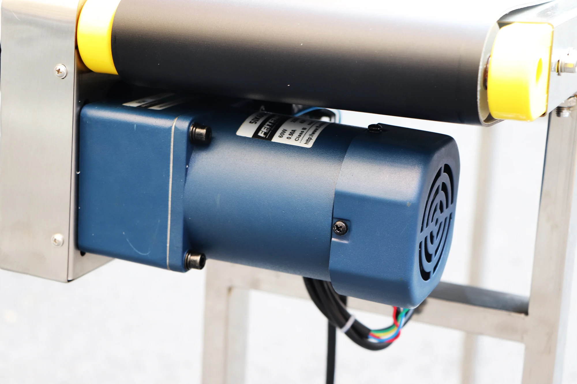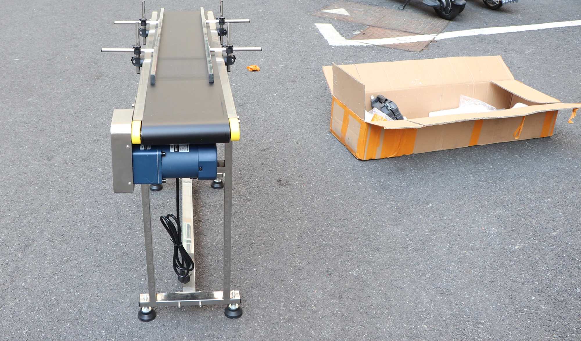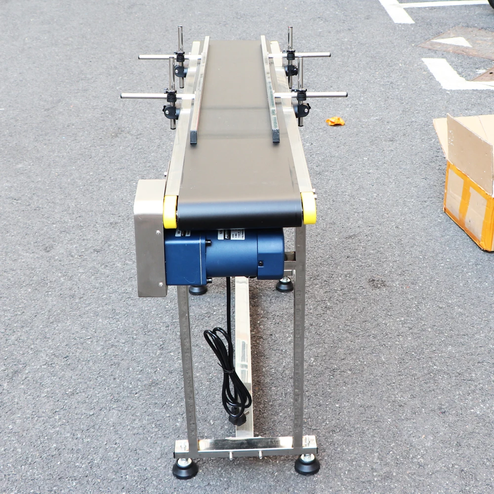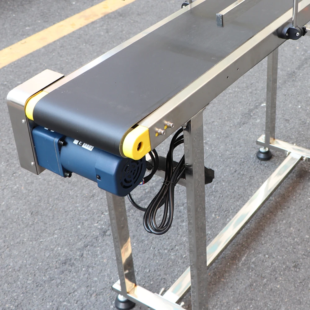 This conveyor is mainly used to transfer the bottles/metal/plastic bag/paper box/sticker, etc, for the printing work of inkjet printer. It is widely used in Food, Drinking, Medicine, Electric, Auto, etc.